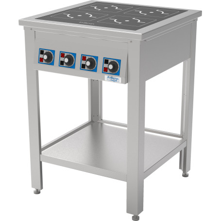 Fribergs populära induktionsspis serie FSI-Semi-Pro med induktionssystem från tyska Berner med beräknad 30 000 timmers livslängd. FSI4090SP = 650x650x900mm, 4 zoner med totalt 7,4kW / 400V   STANDARD: - 4-zoners spisar. - Konstruktion helt i rostfritt. - Underhylla på alla fullhöjdsspisar. - Stabila steglösa vred för värmereglering. - Boostfunktion 3,5 kW. - Duo Safety.   Följande tillval finns att beställa till Fribergs FSI-Semi-Pro serien - kontakta oss gärna för mer information: - Gallerhylla undertill. - Front- och sidohyllor. - Inklädnader/Skåp. - Höj- och sänkbart stativ. - 2 alternativt 4 zoner. - GN 1/1 ugn. - Eluttag i fronten.